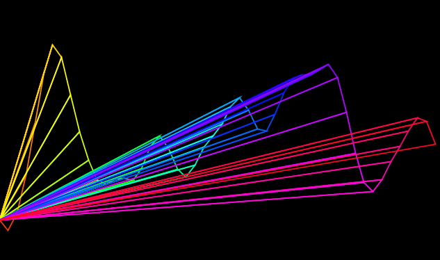 This connects each vertex with a single point. With more playing I think this could be an interesting visual.