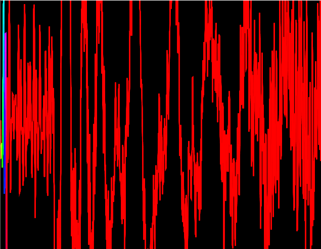 Since there is a higher range for the colours at a higher sample rate, the colours appear to be more dull. Reducing this maximum range in the colourMode method means that only a portion of the wave is coloured, with the rest being in red.